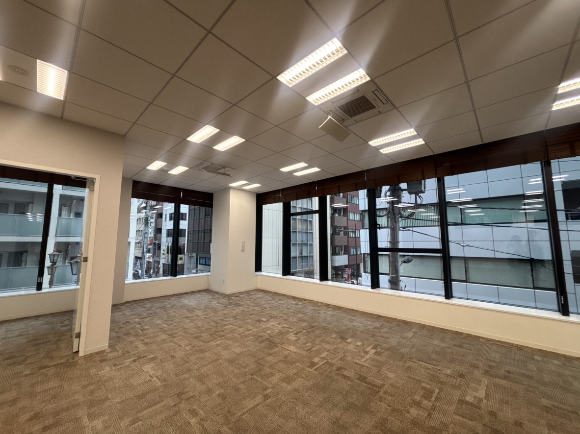 八丁堀徒歩2分の新築物件です!2面採光で、開放的な明るいオフィスです♪設備面では、機械警備・個別空調・OAフロア・男女別トイレなどが備わっています。